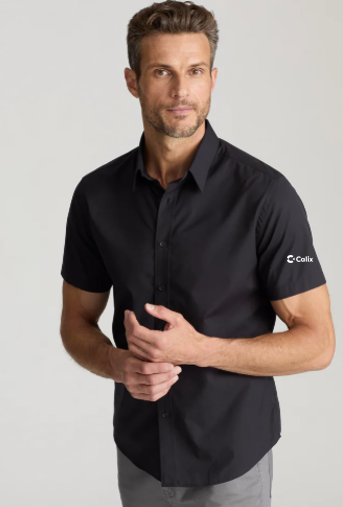 Cool starts with the UNTUCKit Classic Coufran Short Sleeve Shirt. This black short sleeve end on end shirt provides casual comfort for the warm weather. The Coufran is ready to take you from work straight through to the after hours.